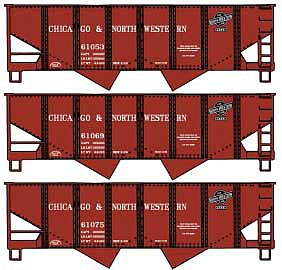 This Accurail 1230 HO Scale USRA 55-Ton 2-Bay Coal Hopper 3-Pack - Kit -- Chicago & North Western #61053, 61069, 61075 (Boxcar Red, black) is brand new and ships in the manufacturer's original packaging. This is a genuine Accurail product.