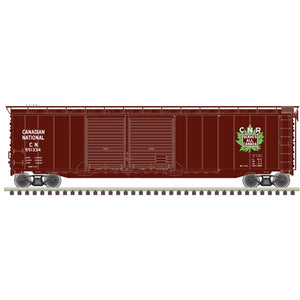 Atlas Model Railroad 20006572 HO Scale Postwar 50' Double-Door Boxcar - Ready to Run - Master(R) -- Canadian National 551387 (Boxcar Red, white, green, Leaf Logo)