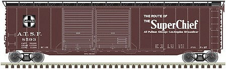 Atlas Model Railroad 20006592 HO Scale Postwar 50' Double-Door Boxcar - Ready to Run - Master(R) -- Santa Fe 8593 (Boxcar Red, black, white, Super Chief)