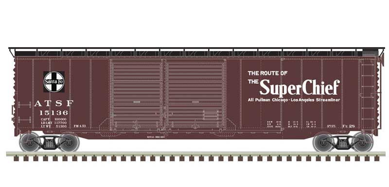 Atlas Model Railroad 20006593 HO Scale Postwar 50' Double-Door Boxcar - Ready to Run - Master(R) -- Santa Fe 15136 (Boxcar Red, black, white, Super Chief) This is a genuine Atlas Model Railroad product.
