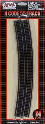 Atlas Model Railroad 2028 N Scale Code 55 Track w/Nickel-Silver Rail & Brown Ties -- 21-1/4" Radius Full Curve pkg(6) This is a genuine Atlas Model Railroad product.