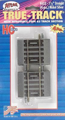 Atlas Model Railroad 453 HO Scale True-Track(R) Code 83 Track & Roadbed System -- Straight Section - 1-1/2" 3.2cm pkg(4) This is a genuine Atlas Model Railroad product.