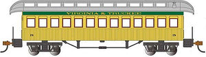 Bachmann 15107 HO Scale Old Time Wood Coach with Round-End Clerestory Roof - Ready to Run -- Virginia & Truckee (yellow, green)