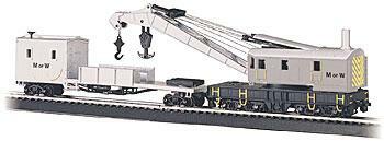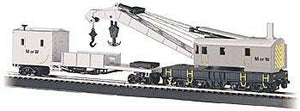 Bachmann 16138 HO Scale 250-Ton Crane Car & Boom Tender - Silver Series(R) -- Maintenance-of-Way (Silver, black)
