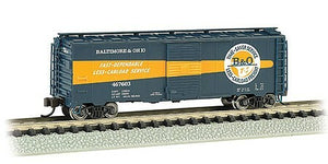 Bachmann 17064 N Scale AAR 40' Steel Boxcar - Ready to Run - Silver Series(R) -- Baltimore & Ohio 467603 (Timesaver Scheme, blue, orange)