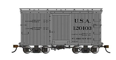 Bachmann 26555 On30 Scale 18' Wood Boxcar with Murphy Roof 2-Pack - Ready to Run - Spectrum(R) -- U.S.A. #120096, 120103 (gray)