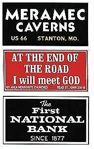 Blair Line 2252 HO Scale Barn Sign Decals -- Set #3 - Meramec Caverns, Will Meet God, First National Bank