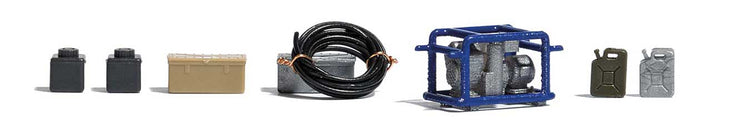 Busch 7800 HO Scale Portable Generator Set -- Generator, 2 Gas Cans, Cable and Equipment Boxes This is a genuine Busch product.