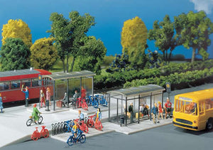 Faller 180553 HO Scale Modern Bus Shelters (2) & Bicycle Racks (2) This is a genuine Faller product.