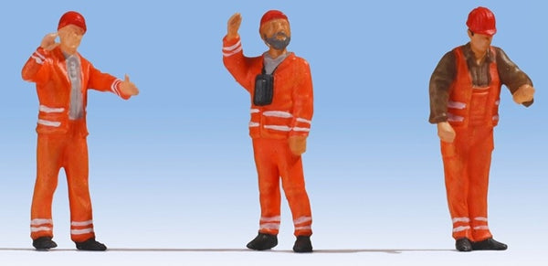 Noch 17820 O Scale German Railroad Switchmen -- Orange Uniforms pkg(3) This is a genuine Noch product.