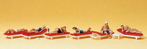 Preiser 10429 HO Scale Recreation & Sports -- Sunbathers on Lounges This is a genuine Preiser product.