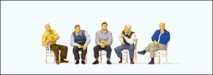 Preiser 10579 HO Scale Pedestrians -- Waiting Men Sitting on Chairs pkg(5) This is a genuine Preiser product.