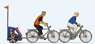 Preiser 10638 HO Scale Family on Bicycle Trip -- 2 Riders w/Bikes & Baby Trailer This is a genuine Preiser product.