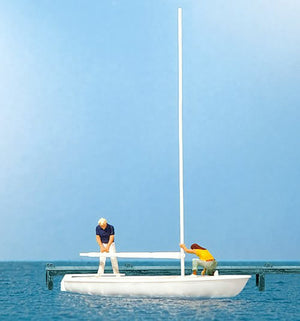 Preiser 10680 HO Scale Korsar Sailboat w/Sailors Unrigging the Sails -- Sails Down (white, yellow) This is a genuine Preiser product.