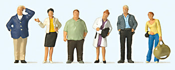 Preiser 10734 HO Scale Waiting Train Travelers -- pkg(6)