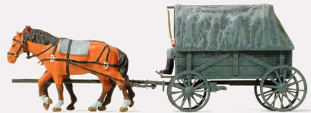 Preiser 16588 HO Scale Former German Army WWII Horse-Drawn Transport (Kit)