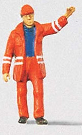 Preiser 28009 HO Scale Individual Figure - Railway Personel -- Modern Switchman w/Safety Uniform - Raised Arm This is a genuine Preiser product.