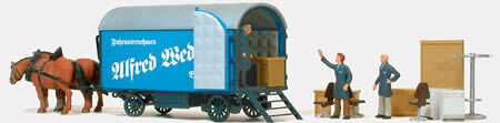 Preiser 30494 HO Scale Moving Wagon w/2 Horses, Figures & Accessories