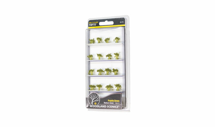 Woodland Scenics 777 All Scale Peel 'n' Place Tufts -- Medium Green Prairie This is a genuine Woodland Scenics product.