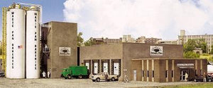 Bakeries are dependent on railroads for raw materials and the Walthers Cornerstone Magic Pan Commercial Bakery is no exception. This easy-to-build plastic kit is a great, unique industry for your post-1960s HO Scale railroad. The kit includes a main building with truck loading doors, four storage silos with piping and more. At the real plants, flour and sugar arrive in Airslide(R) or other kinds of covered hoppers and vegetable oil and corn syrup in tank cars, while finished bakery goods are shipped by truck. The Magic Pan Commercial Bakery buildings are easily arranged to fit your available space. You'll also find this kit great for other businesses such as a plastic molding plants or chemical distributors. As shown Magic Pan Commercial Bakery measures 16 x 8 x 3-1/2" 40.6 x 20.3 x 8.8cm. This is just one of many Cornerstone industrial buildings. See more railroad-served industries here: