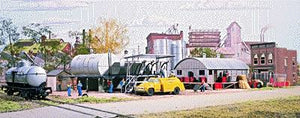 The prototypes for bulk oil distributors like the Walthers Cornerstone HO Scale Interstate Fuel and Oil have long been important for every railroad. At home in cities and towns, dealerships like this distribute fuel oil, gasoline and other products locally. This structure kit includes horizontal and vertical storage tanks, above-ground piping, pump house with header stand to unload tank cars, truck loading rack and corrugated metal office. Like the prototypes, the various pieces on Interstate Fuel and Oil can be arranged to fit available space. A gas pump, oil drums and other details are also provided. Interstate Fuel and Oil is one of many Cornerstone HO Scale industry kits. Vehicles and figures are not included.