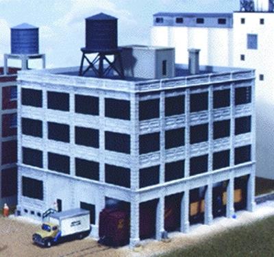 At the Walthers Cornerstone Hardwood Furniture Company boxcar doors slide open. Ramps clang into place from the loading dock. Strong backs bend to their task as the first crates are carried out of the warehouse and into the car. Tucked into the cramped quarters of the industrial district, the Hardwood Furniture Company is the kind of industry that every layout needs. It's big enough to look right, small enough to fit and packed with realism. Check out the authentic architectural trim molded on each wall or the over 50 separate windows! There's a covered loading dock for boxcars and roll-up doors for trucks. Up on the roof, a water tank, elevator house and chimney are included to detail this important area. Complete instructions and colorful signs round out the kit. Plus, modelers who desire to make the Hardwood Furniture Company a larger building will find it's easy to expand with some minor kitbashing.