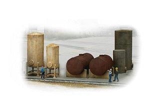 Walthers Cornerstone N Scale Storage Tanks are great scenic details for any industrial building or yard. The kit includes parts for six different tanks with supports and manway details. Use these details near or on factories and warehouses for added realism.