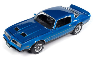 American Muscle item 1331, 1/18 scale 1978 Pontiac Firebird Formula in Martinique Blue channels the sleek refinement of late-'70s GM design. With its sloped nose, Formula graphics, and understated aggression, this diecast captures the Firebird's evolution into a stylish street cruiser. A perfect piece for collectors who appreciate Pontiac's flair for performance.
