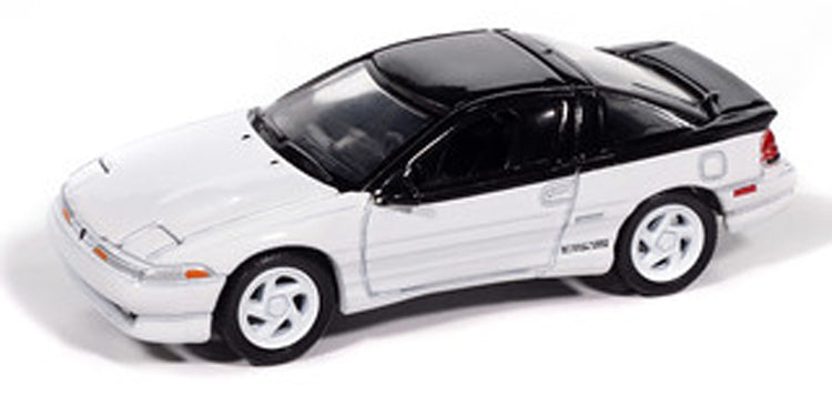 Auto World AWSP196-A 1/64 1991 Eagle Talon TSi Diecast Car Model delivers turbocharged performance in Quartz with black trim. This 1/64 scale diecast features a diecast metal body and chassis, rubber tires, and authentic factory styling.