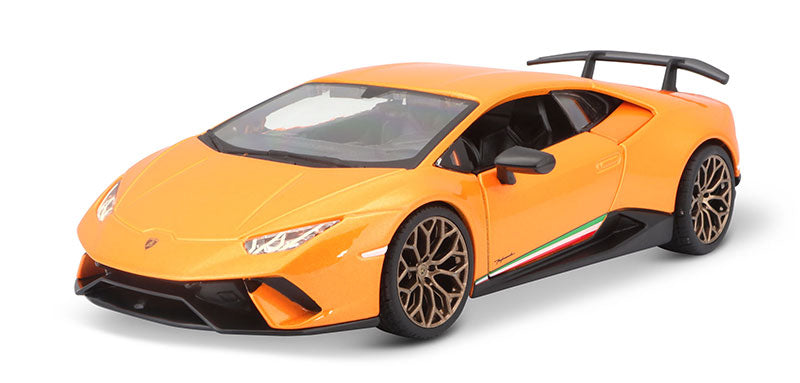 Bburago 21092OR 1/24 Lamborghini Huracan Performante Orange Diecast delivers track-ready performance in a vivid orange metallic finish. This 1/24 scale diecast model features opening doors, full-function steering, and a detailed cockpit. With Performante badging and aggressive styling, it's a bold addition to any Lamborghini collection.