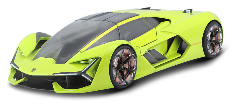 Bburago 21094LGR 1/24 Lamborghini Terzo Millenio Green Diecast Model reimagines electric supercars with a bold light green finish and futuristic styling. This 1/24 scale diecast model features opening doors, full-function steering, and a detailed cockpit. With concept proportions and visionary design, it's a standout piece for Lamborghini fans.