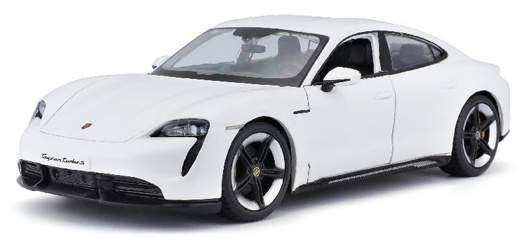 Bburago 21098WT 1/24 Porsche Taycan White Diecast Electric Car brings electrified luxury to your collection with a clean white finish and sleek bodywork. This 1/24 scale diecast model features opening doors, full-function steering, and a detailed interior. With a diecast metal body and modern styling, the Taycan is a must-have for fans of electric performance.