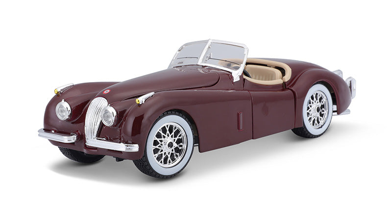 Bburago 22018R 1/24 1951 Jaguar XK 120 Roadster Red Diecast Classic brings timeless British style to life in a bold red finish. This 1/24 scale diecast model features opening doors and hood, full-function steering, and a detailed cockpit. With vintage proportions and elegant detailing, it's a must-have for fans of classic roadsters.