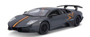 Bburago 22120MGY 1/24 Lamborghini Murcielago LP670-4 SV Gray Diecast channels raw V12 power in a metallic gray finish with SV graphics. This 1/24 scale diecast model features opening doors and trunk, full-function steering, and a detailed cockpit. With limited edition styling and aggressive proportions, it's a must-have for Lamborghini collectors.