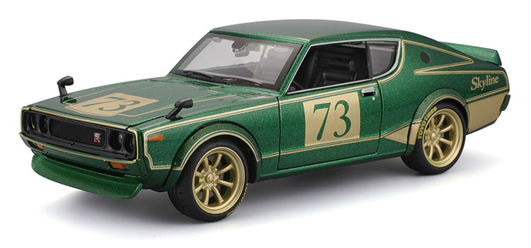 1973 Nissan Skyline 2000GT-R in Metallic Green #73 - Tokyo Mods Features:o Diecast metal body o Detailed interior This is a genuine Maisto product.