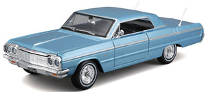 1964 Chevrolet Impala in Metallic Blue Features include • Diecast Metal body • Detailed interior This is a genuine Maisto product.