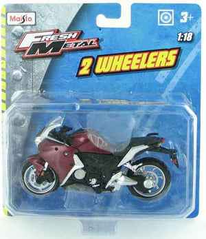 Honda Motorcycle in Maroon - Fresh Metal 2 Wheelers series Diecast construction with some plastic parts. This is a genuine Maisto product.