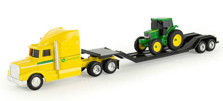 John Deere Farm Semi in Yellow with Flatbed hauling Four-wheel Drive Tractor Made of durable plastic This is a genuine Ertl product.