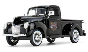 The Busted Knuckle Garage - 1940 Ford Pickup in Black • Diecast metal • Classic styling of the actual truck • Opening cab doors • Accurate detailed cab interior • Opening tailgate • Detailed chassis and undercarriage This is a genuine First Gear product.