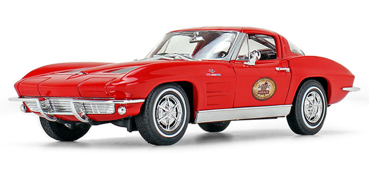 The Busted Knuckle Garage - 1963 Chevrolet Corvette in Red • Diecast metal • Authentic engine detail • Opening doors and hood• Accurate detailed cab interior • Posable front wheels • Detailed undercarriage *Includes BKG licens This is a genuine First Gear product.