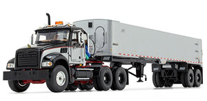 Mack Granite MP Day Cab in Black Red and Sliver with East Genesis End Dump Trailer Features and Details: • diecast metal replicas • opening hood and doors• authentic engine detail • detailed cab interior • detailed chassis and und This is a genuine First Gear product.