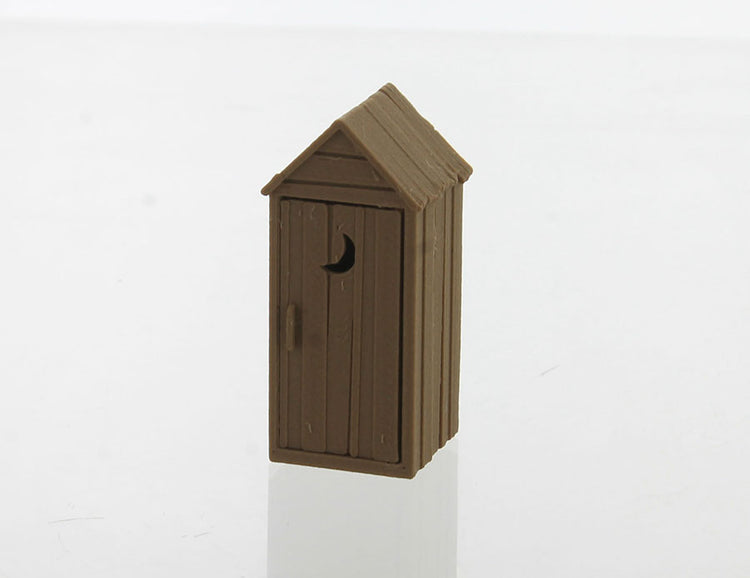 - 1/64 scale rustic outhouse for dioramas and model train layouts
