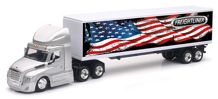 Freightliner Cascadia with Patriotic Graphics Cab is made of diecast metal the balance is durable plastic This is a genuine New Ray product.
