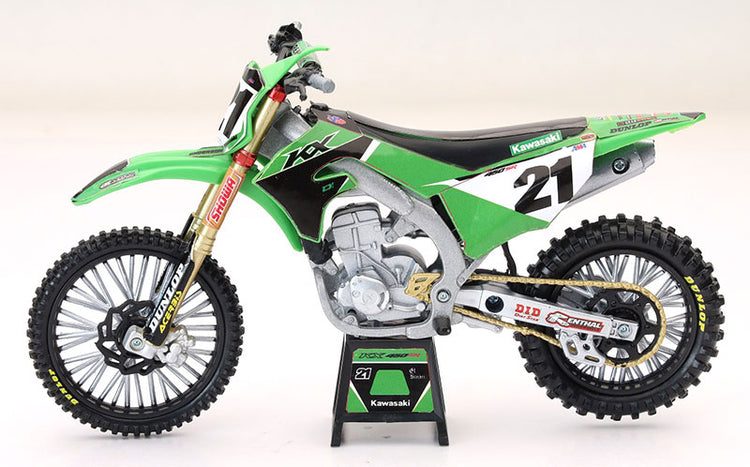 2022 Kawasaki Factory Team KX450F Dirt Bike - #21 Jason Anderson Made of diecast metal with durable plastic parts This is a genuine New Ray product.