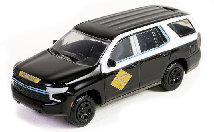 Delaware State Police - Centennial Anniversary - 2023 Chevrolet Tahoe Police Pursuit Vehicle Features and Details: • Hobby Exclusive • Chrome Accents • Metal Chassis • Real Rubber Tires • True-To-Scale Detail • Limited Edition This is a genuine Greenlight product.