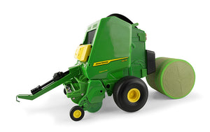 John Deere 561R Round Baler - LP84370 Features: • Made of Diecast metal • Plastic bale chamber • New mounted preservative tank • Opening rear bale chamber • Includes one bale This is a genuine Ertl product.