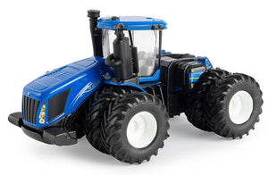 New Holland T9.645 Articulating Tractor with PLM Intelligence with Duals Features Include • Newly updated Interior • Air intake system • Hood stripe decoration • Die-cast body and wheels • Soft plastic tires Packaged on a blis This is a genuine Ertl product.