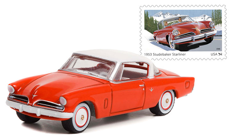 1953 Studebaker Starliner - United States Postal Service USPS America on the Move: 50s Sporty Cars Features and Details: • Hobby Exclusive • Chrome Accents • Metal Chassis • Real Rubber Tires • True-To-Scale Detail • Limited E This is a genuine Greenlight product.