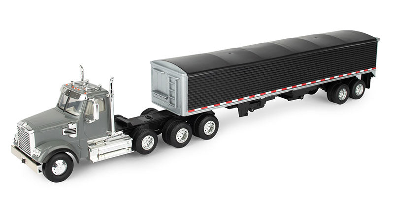 Freightliner 122SD Semi with Grain Trailer Features include:• Lift up tarp top• Opening undercarriage grain doors• Working hitch• Free-rolling wheels Made of durable plastic This is a genuine Ertl product.