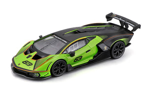 Bburago 41161 1/32 Lamborghini Essenza SCV12 Diecast Race Car channels track-only aggression in a green and black finish. This 1/32 scale diecast model features a diecast metal body, electrostatic paint, and detailed cockpit. A must-have for fans of Lamborghini's most extreme V12.